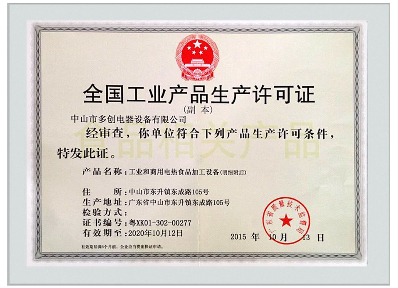 產品通過了生產許可XK21-007-01715 粵XK01-302-00608認證,并獲得多項國家認可證書。